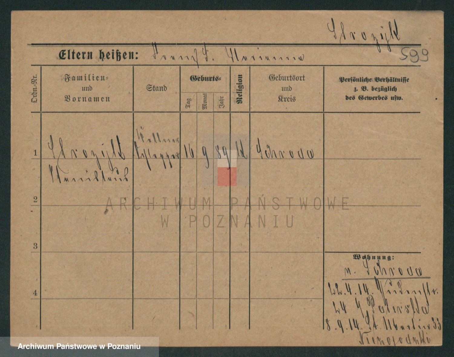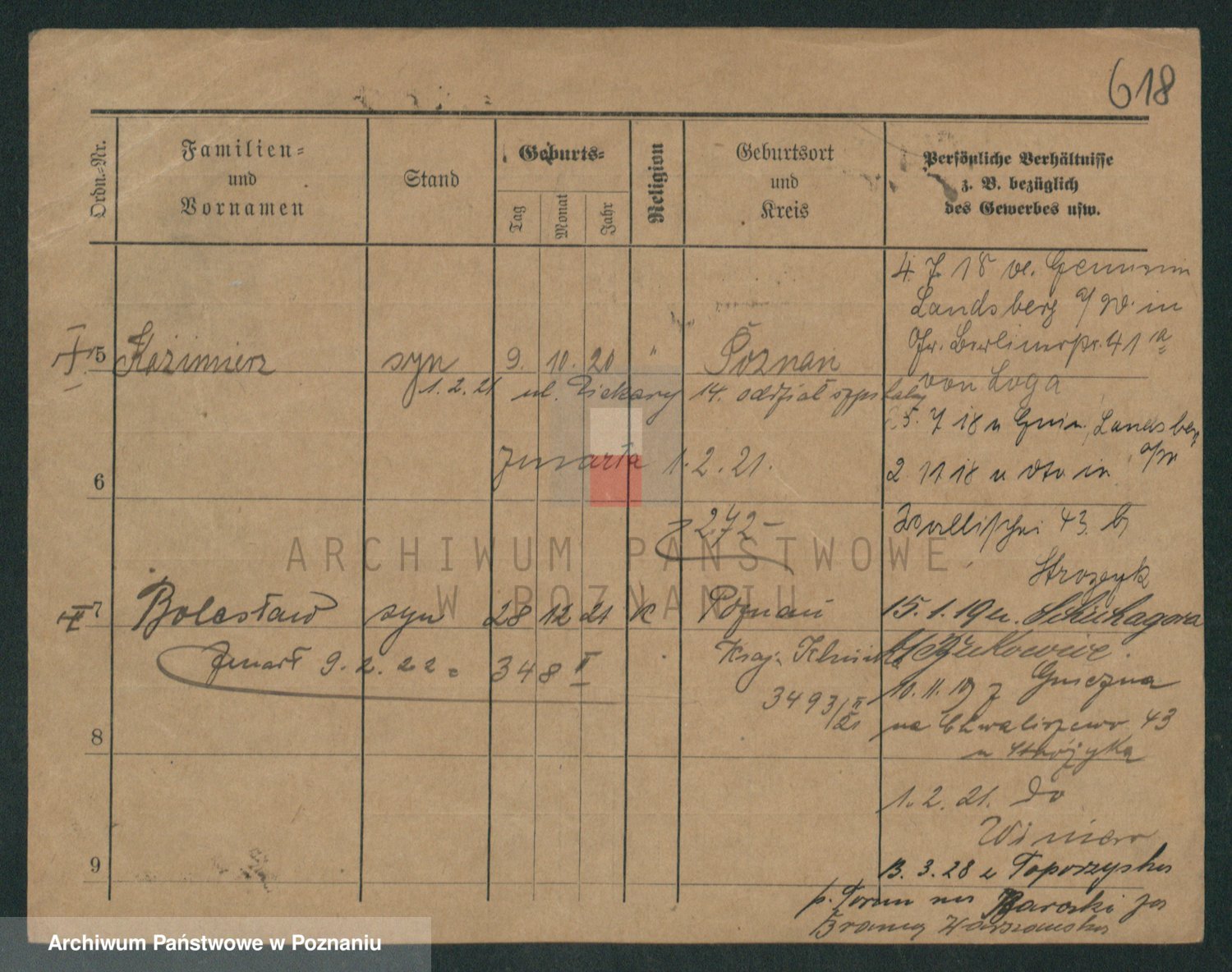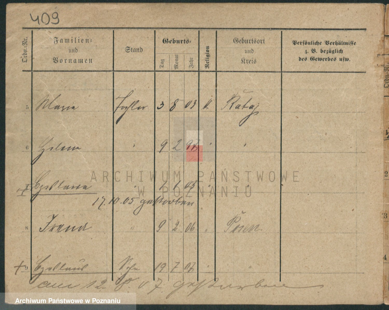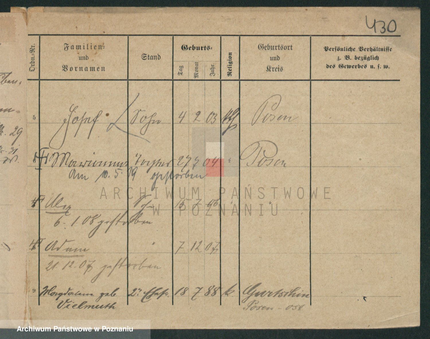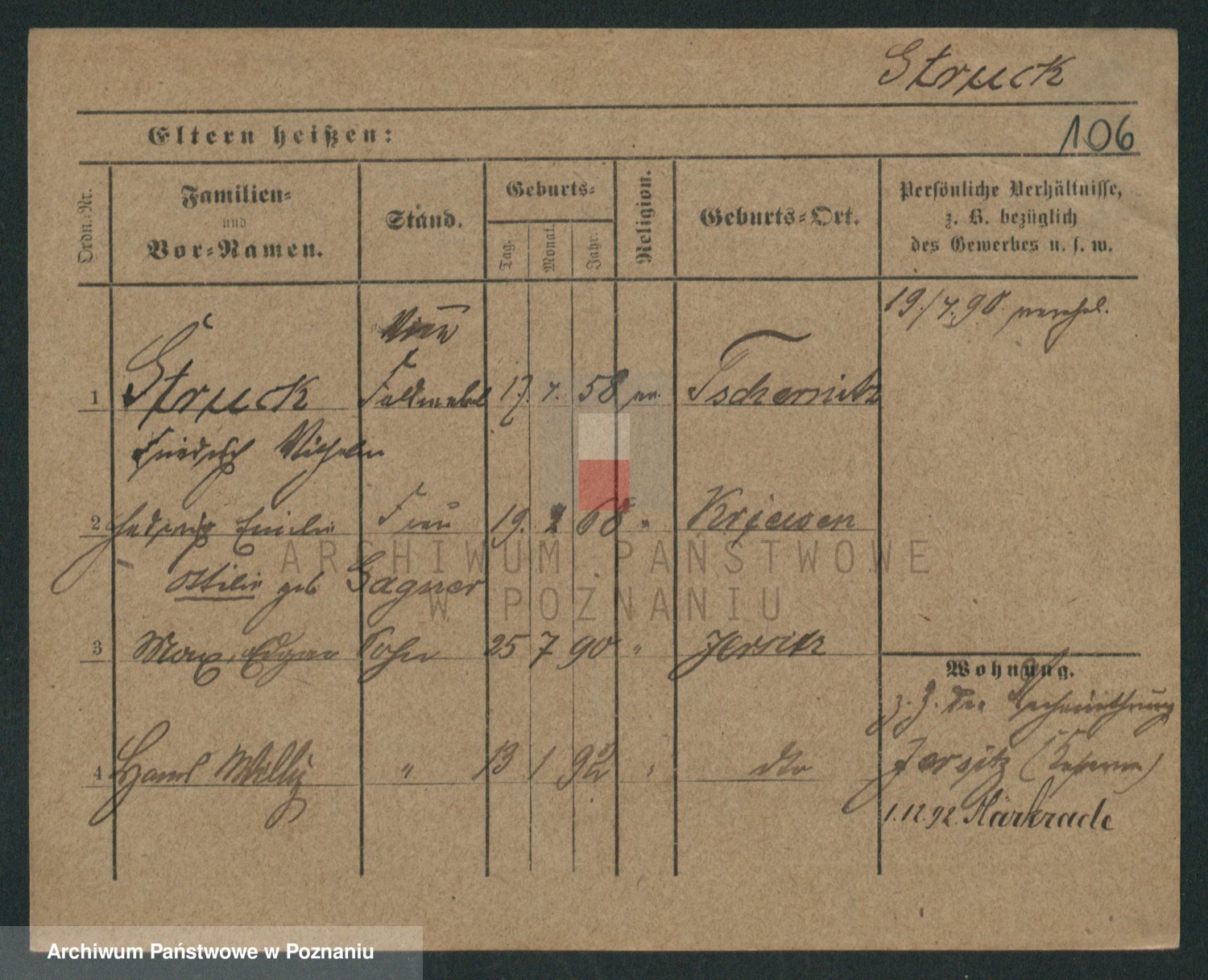 Podgląd karty osobowej dostępny jest po kliknięciu na nazwisko lub ikonkę karty. Można dokonywać powiększenia (ikony na górze) lub przechodzić między kolejnymi skanami (strzałki po bokach).