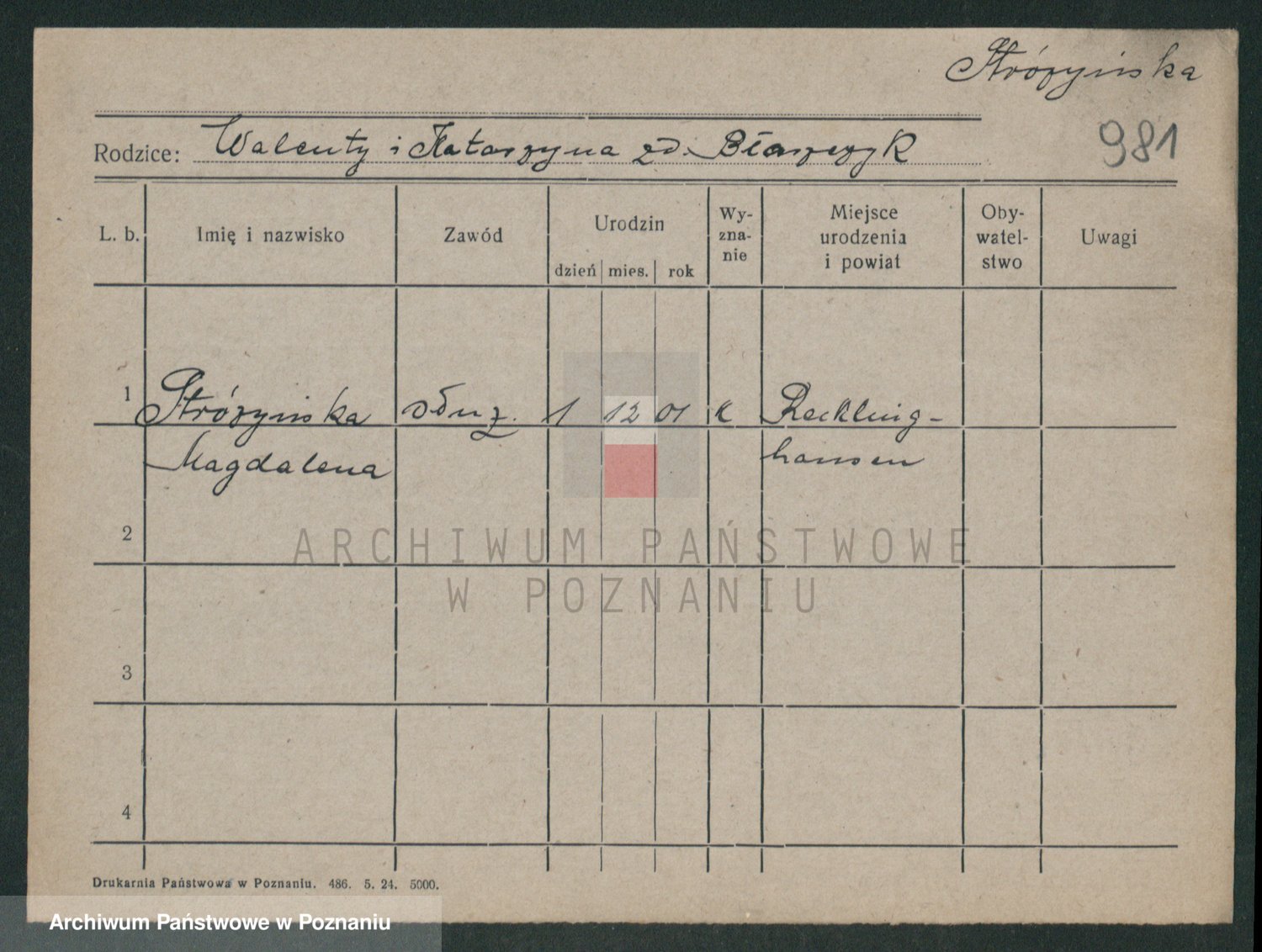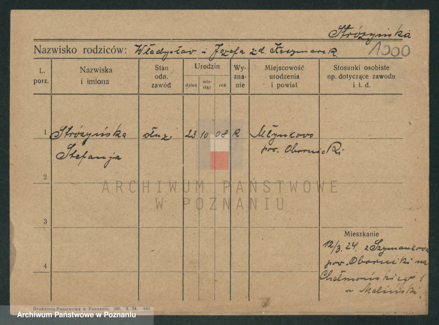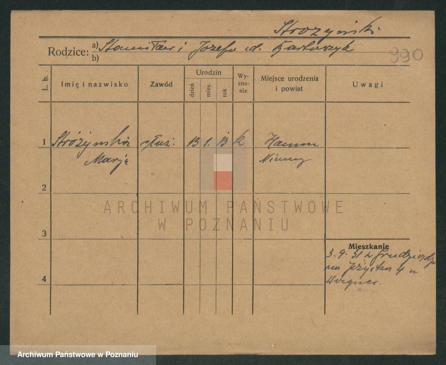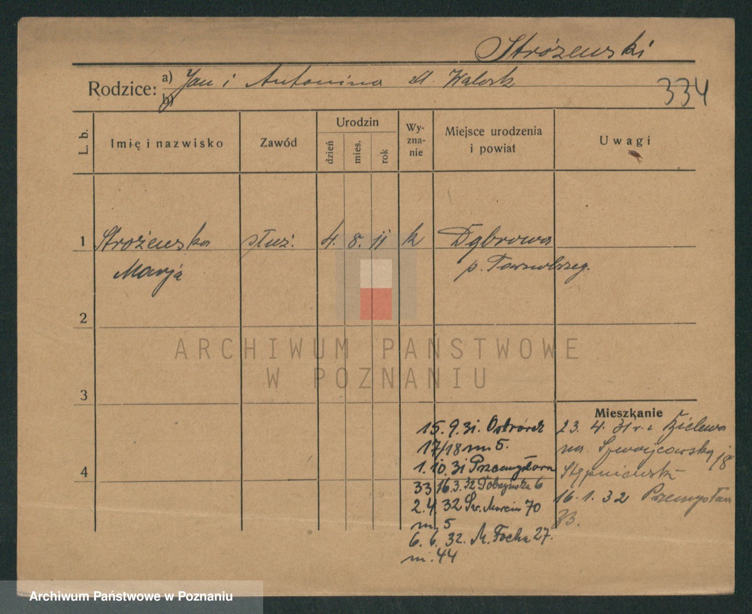 Stróżyńska, Marja