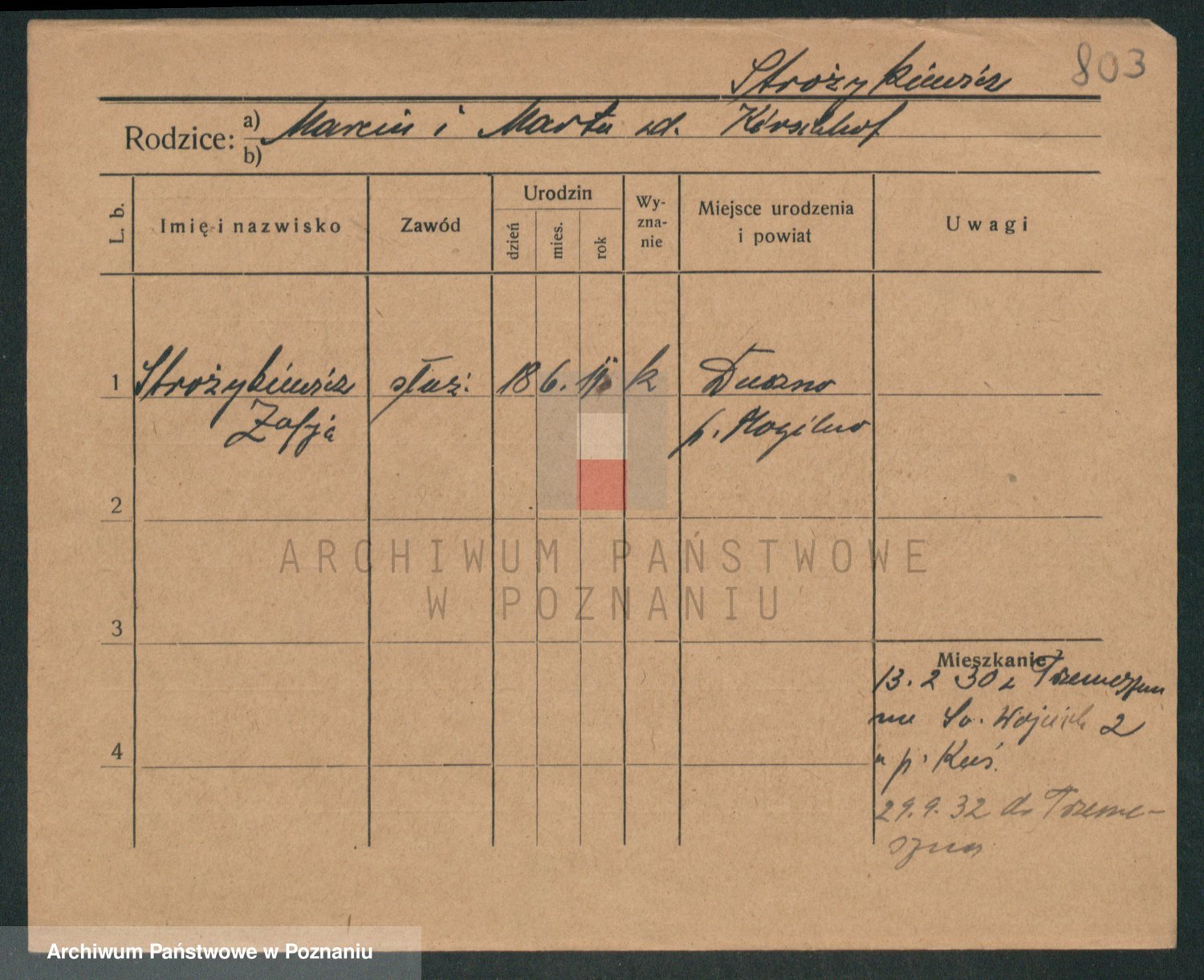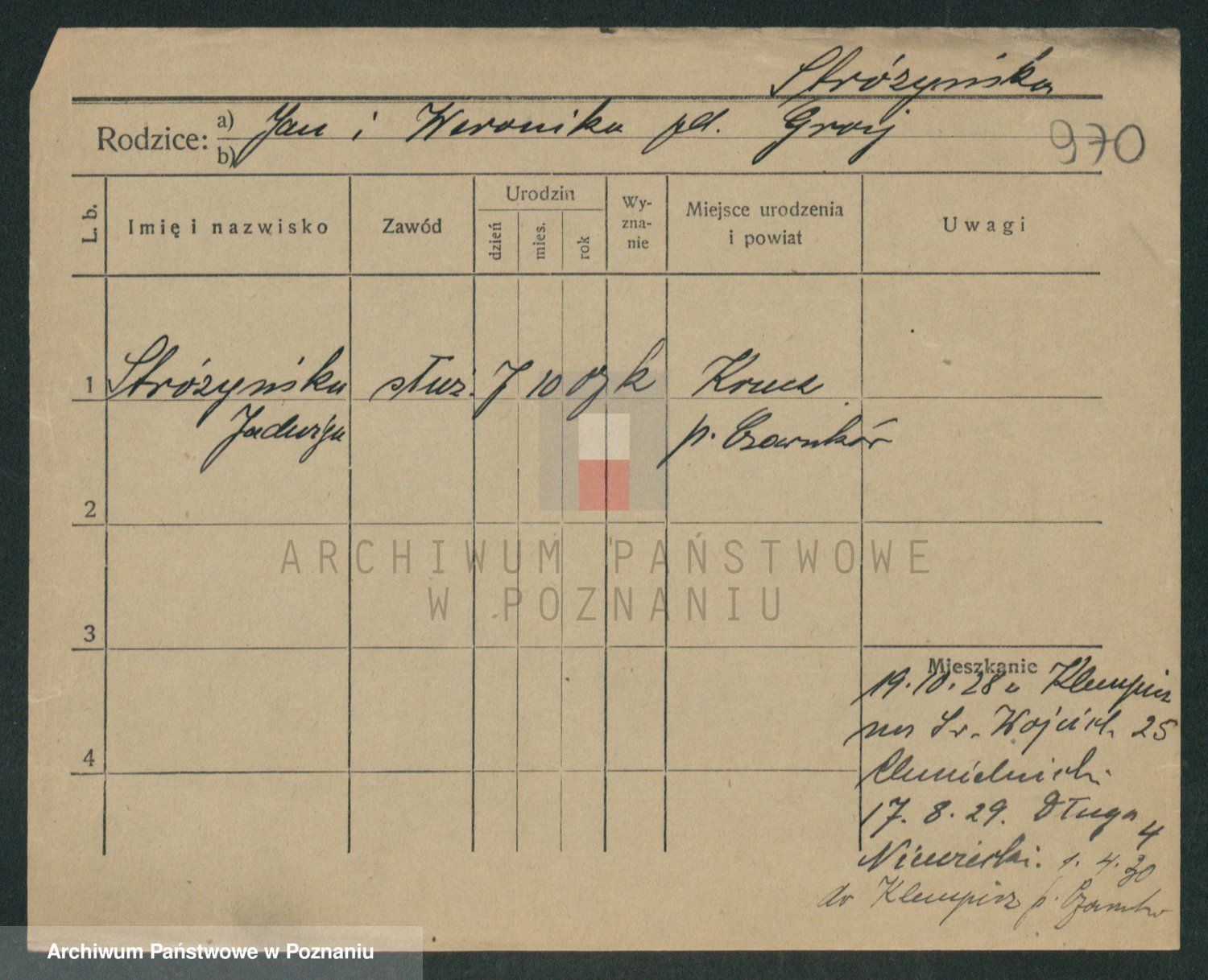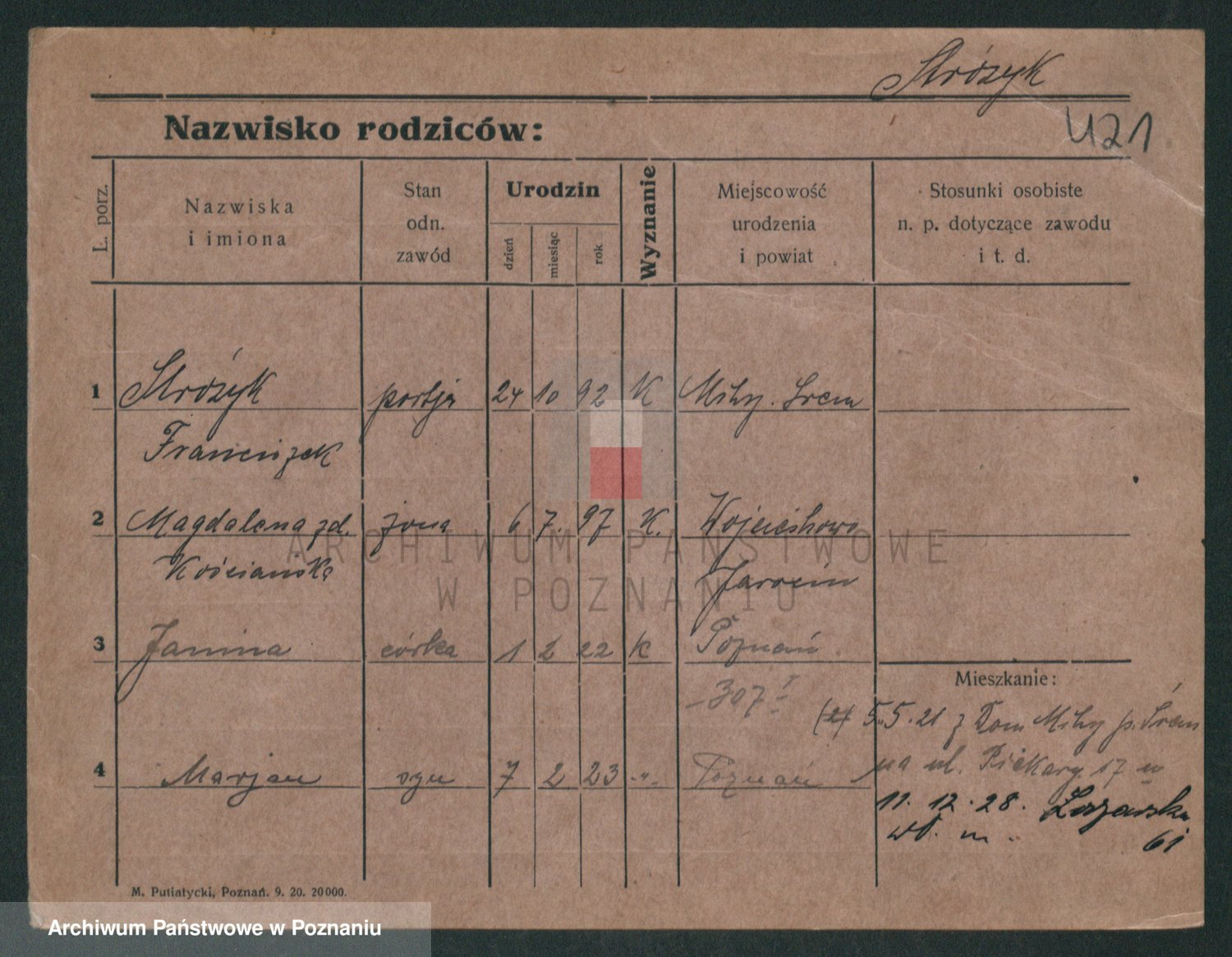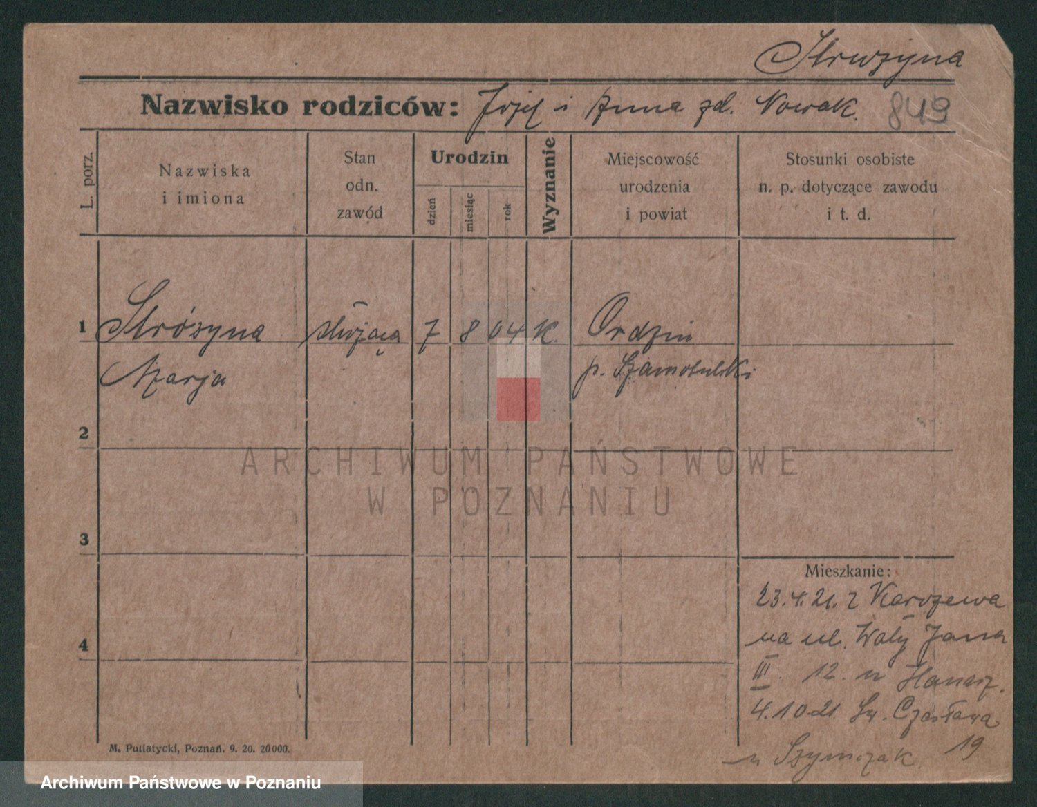 Stróżyńska, Marja