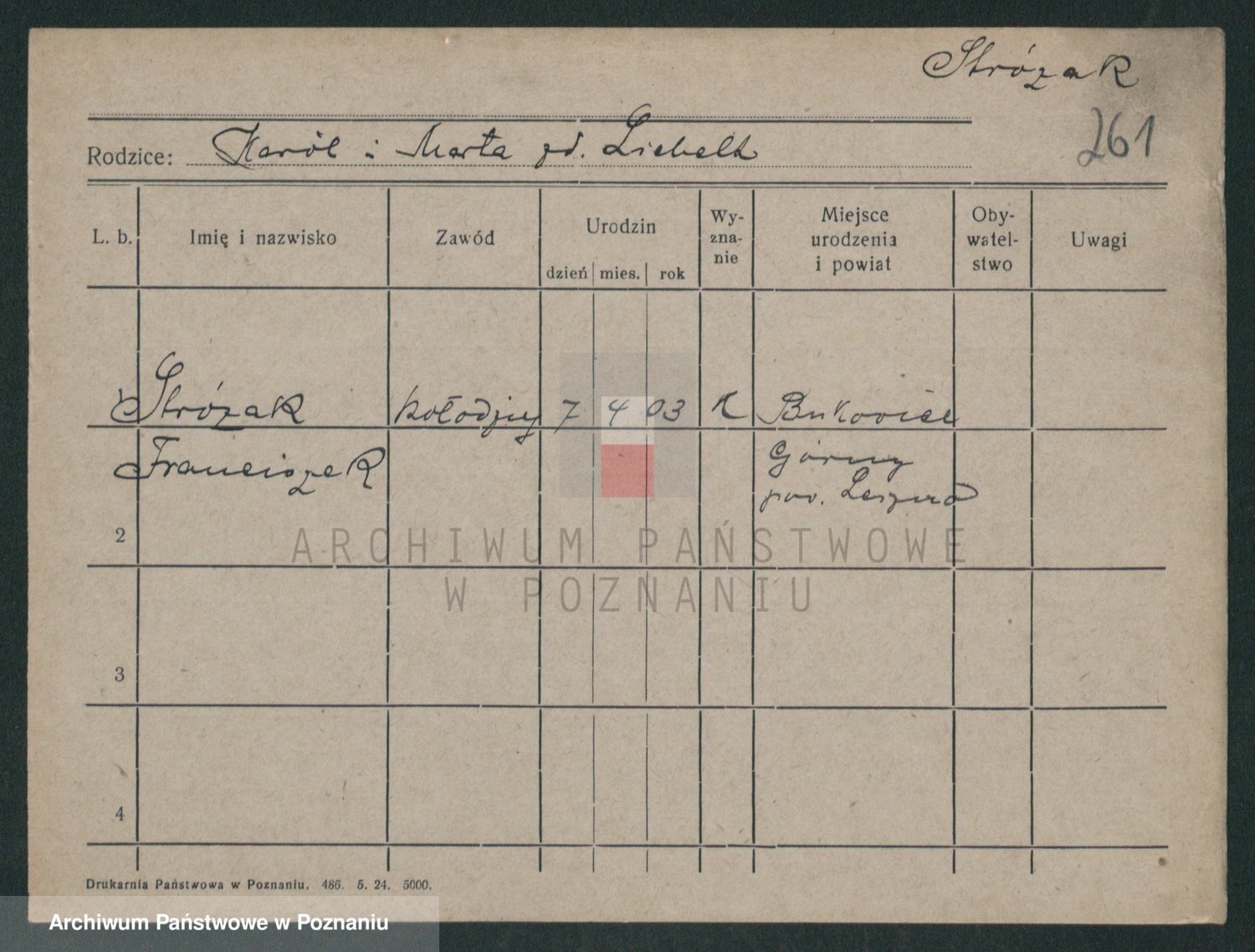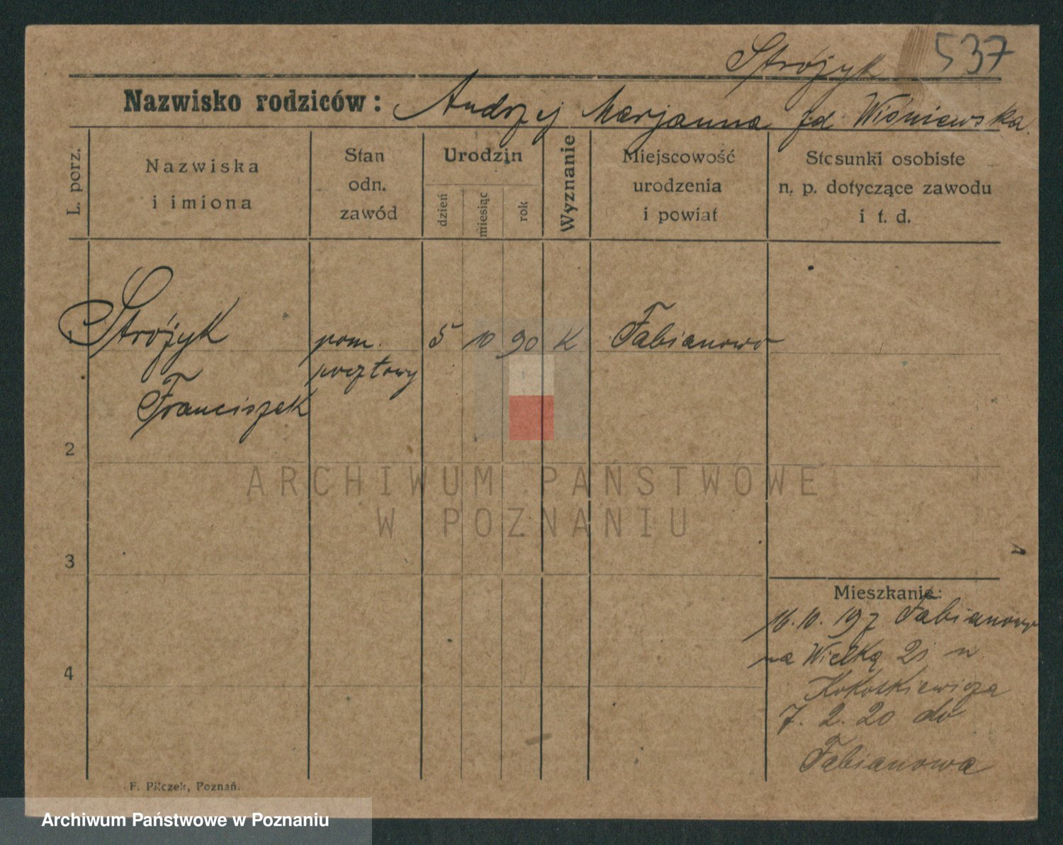 Stróżyńska, Franciszek
