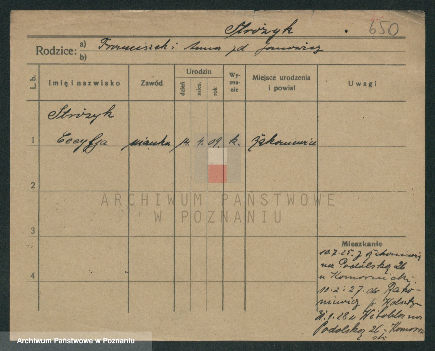 Strożyńska, Franciszka