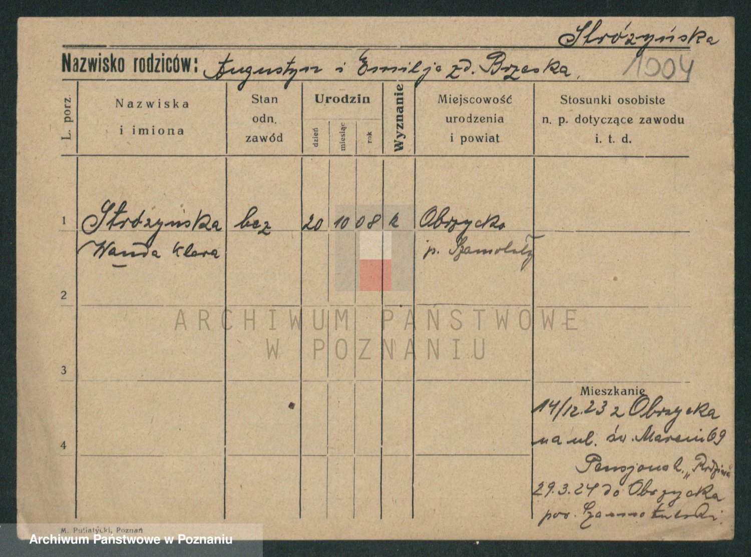 Stróżyńska, Wanda Klara